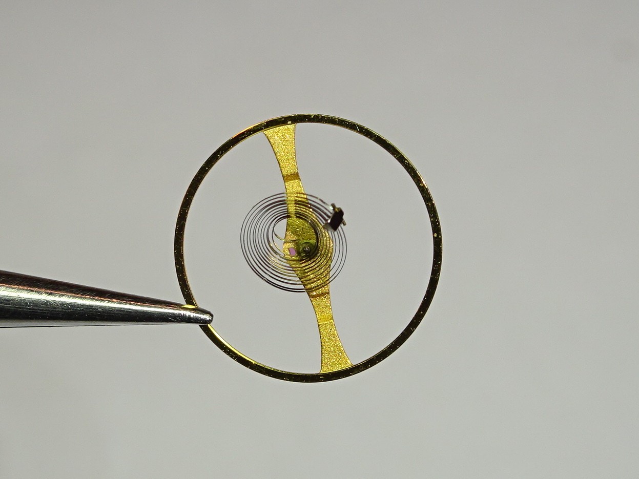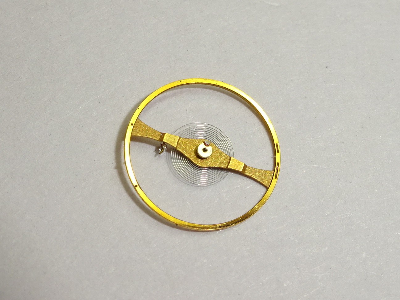 Jaeger Lecoultre 839 complete balance , the hairspring is bent , the balance staff is ok Also for IWC 1852 Part 721 Balancier complet pour Jaeger LeCoultre 839, l'axe est ok mais le spirale est...