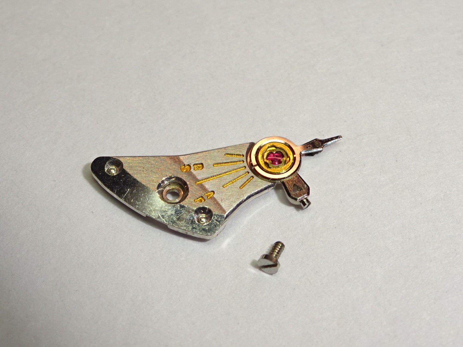 Jaeger Lecoultre 838 balance bridge + screw Part 121 Pont de balancier + vis pour Jaeger LeCoultre 838 Pre-owned / pre-used, dismounted from JLC 838