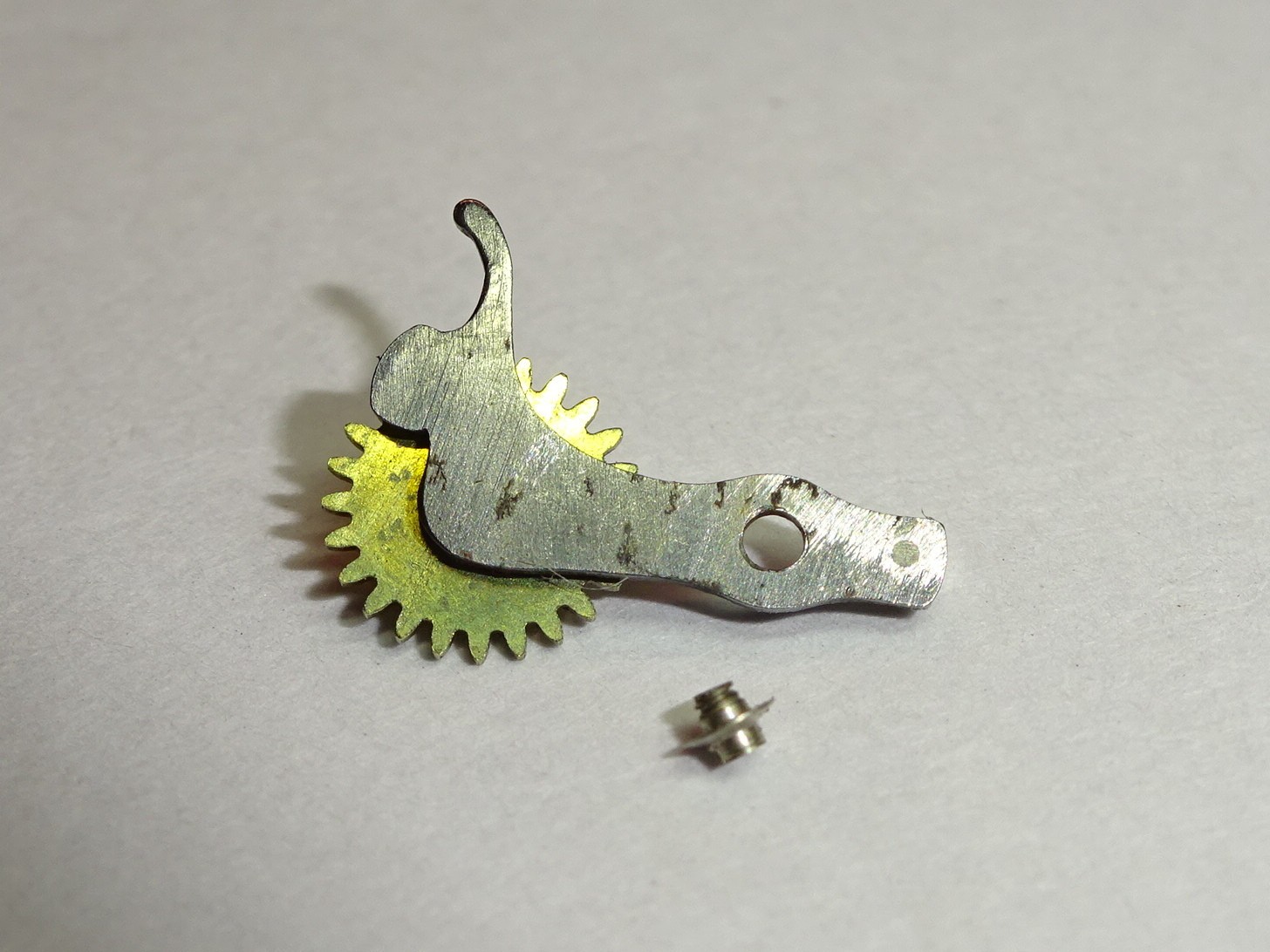 Landeron hammer cam jumper + screw / part 8350 / 8356 Sautoir de came de marteau + vis It fits Landeron following calibers : 50 , 59 and 51 first generation (1947) Pre-used / Pre-owned