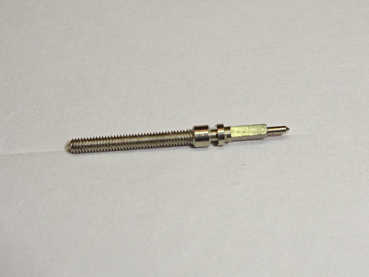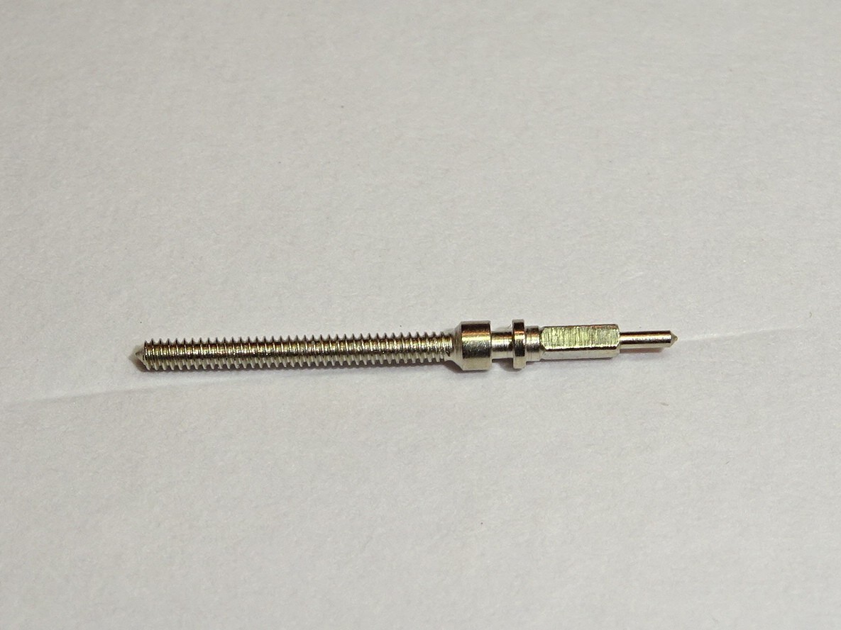 1 Revue 54 (th 120) winding stem / Tige de remontoir Revue 54 , filetage 1.20mm Neuf de stock / New old stock Same winding stem for Revue 54 and 71 / Tige identique pour Revue calibres 54 et 71...